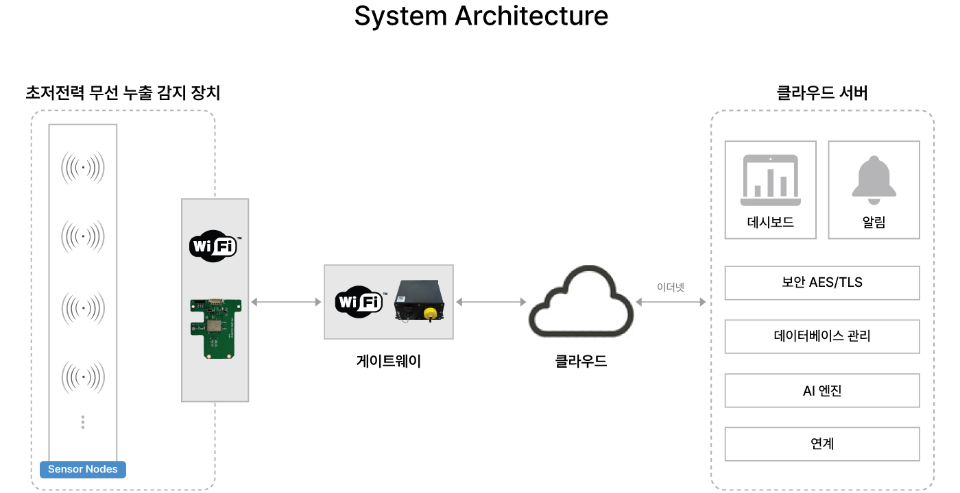 저전력 초음파센서 모듈 및 AI 기술을 적용한 누출 탐지 기술이 고압배관 누출 탐지 토탈 솔루션(AI 기술을 이용하여 누출 여부 판단 )